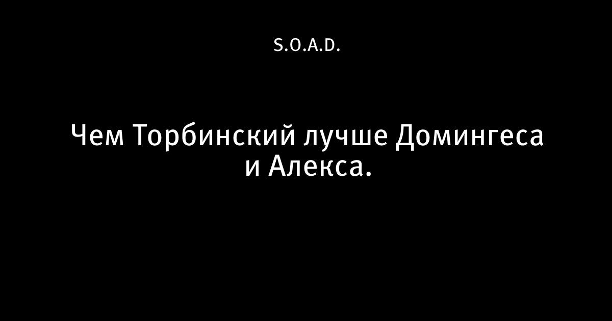 Сейчас много говорят о деградации или переоцененности Торбинского. Конечно, в этом есть доля правды, от него стоит ждать большего, но стоит учитывать два фактора. Первый - подверженность травмам. А второй заключается в целом негативном отношении болельщиков Спартака к игроку и в том почему лучшими игроками обычно становятся яркие форварды или атакующего плана полузащитники. Если хорошо изучить статистику Торбинского, можно найти несколько любопытных моментов: Дмитрий в среднем каждые 288 минуты отдавал голевую передачу, а Алекс, один из лучших игроков прошлого сезона в РПЛ, делал тоже действо в среднем каждые 273 минуты, а волшебный Домингес вообще каждые 416 минут. Не стоит забывать и соотношение травм у этих игроков. У аргентинца 38 отборов (37%), у бразильца 60 отборов (53%), у Торбинского же 88 отборов (52%). На Торбинском фолили каждые 27 минут (3 желтых), на Алексе каждые 29 минут (10 желтых карточек), на Домингесе каждые 40 минут (3 желтых карточки). Понятно, что в некоторых компонентах, статистических и нет, Торбинский существенно уступил конкурентам, но, как мне кажется, все равно подобная статистика слишком хороша для деградации.