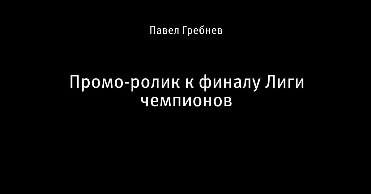 5 июня 2015, 12:17 Промо-ролик к финалу Лиги чемпионов Для просмотра кликните по картинке Автор Павел Гребнев Этот пост опубликован в блоге на Трибуне Sports.ru. Присоединяйтесь к крупнейшему сообществу спортивных болельщиков! Другие посты блога Эстетика футбола Барселона Лига чемпионов УЕФА Ювентус