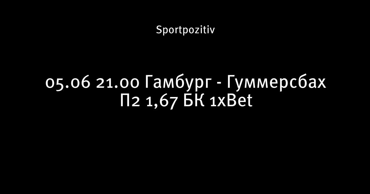 05.06 21.00 Гамбург - Гуммерсбах П2 1,67 БК 1xBet