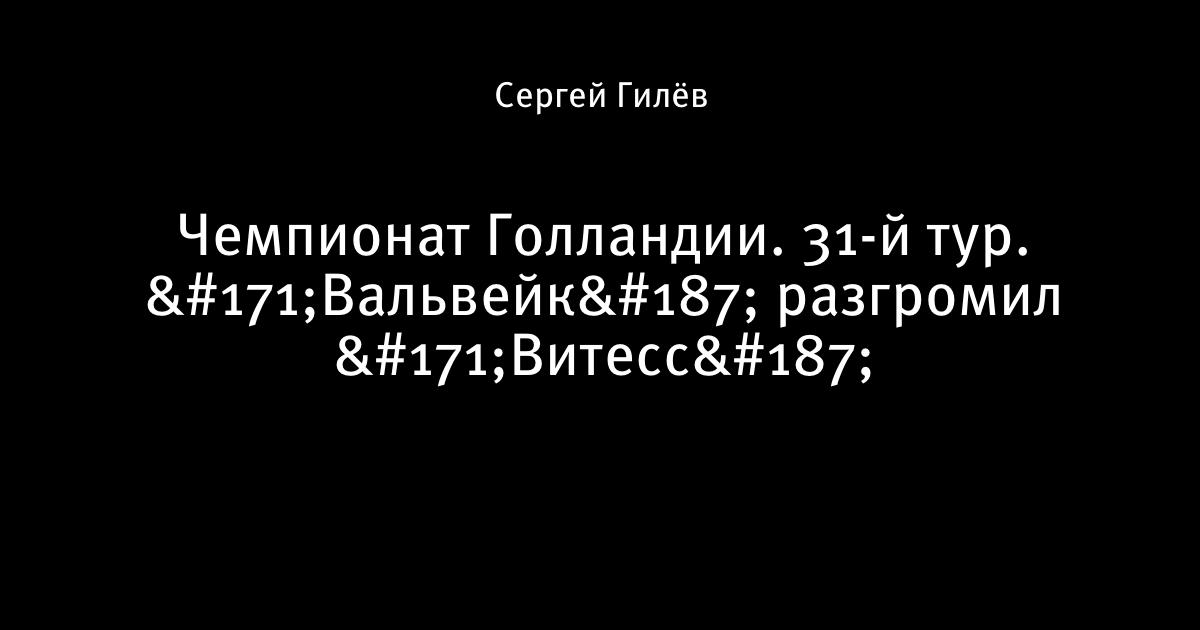 10 апреля 2010, 12:09 Чемпионат Голландии. 31-й тур. «Вальвейк» разгромил «Витесс» Ваалвейк Витесс 4:1 1:0 Jong-a-Pin (12, автогол), 2:0 Борригтер (16), 3:0 Мюлдер (72), 4:0 де Кьюлер (77), 4:1 Мюлдер (83, автогол) Автор Сергей Гилёв Этот пост опубликован в блоге на Трибуне Sports.ru. Присоединяйтесь к крупнейшему сообществу спортивных болельщиков! Другие посты блога Разборки в олимпийском Париже