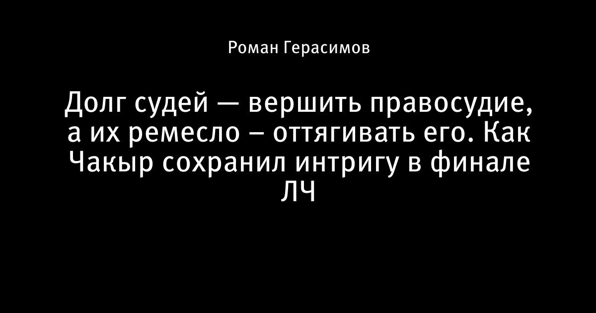 Долг судей — вершить правосудие, а их ремесло – оттягивать его. Как Чакыр сохранил интригу в финале ЛЧ