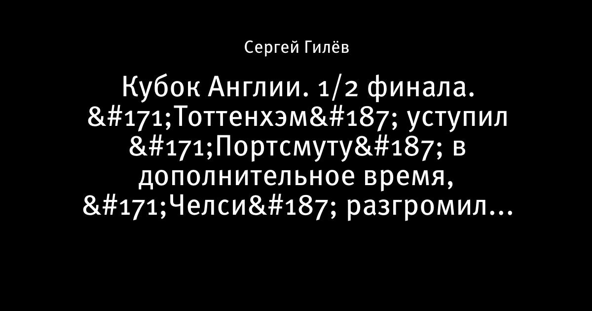 Кубок Англии. 1/2 финала. «Тоттенхэм» уступил «Портсмуту» в дополнительное время, «Челси» разгромил «Астон Виллу»
