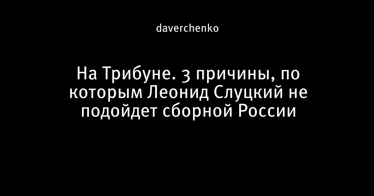 Для начала считаю необходимым сказать следующее — я являюсь болельщиком ЦСКА начиная с 2002 года и искренне симпатизирую Леониду Викторовичу Слуцкому. И мне, как фанату армейцев, было бы безумно приятно, если бы любимый клуб вырастил крепкого и достойного тренера для национальной сборной. В этом посте, однако, я собираюсь высказать свое мнение и попытаться убедить своих читателей в том, что Леонид Викторович — абсолютно неподходящий для нее кандидат. И для того, чтобы так утверждать, у меня есть 3 основные и веские причины: