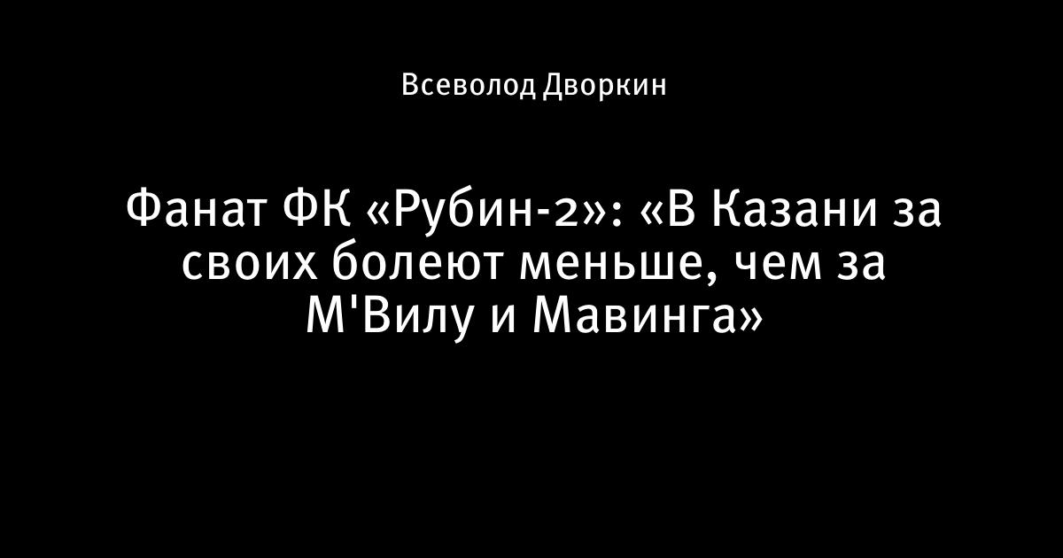 - Я иногда сам езжу болеть за основную команду, хотя являюсь фанатом именно «Рубина-2». Мы можем их поддержать, а ответного жеста пока не дождались. Почему так происходит? Наверное, в Казани низкая культура боления. Опять-таки представить подобное в «Спартаке» и «Зените» сложно. Почему-то за своих болеют меньше, чем за М'Вилу и Мавинга.