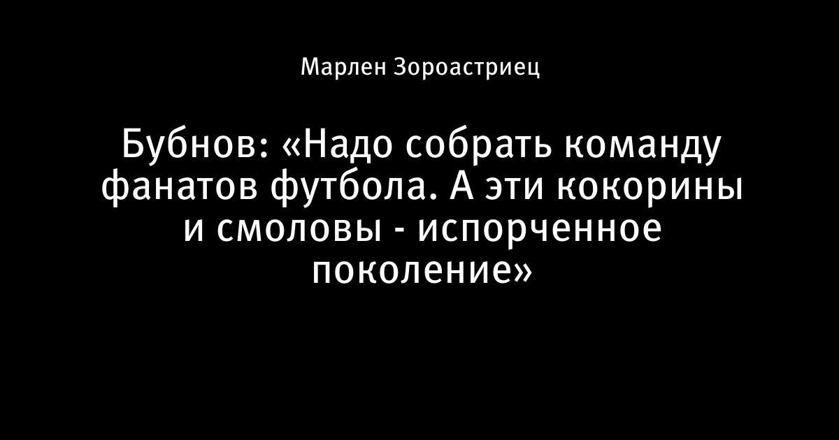Бубнов: «Надо собрать команду фанатов футбола. А эти кокорины и смоловы - испорченное поколение»