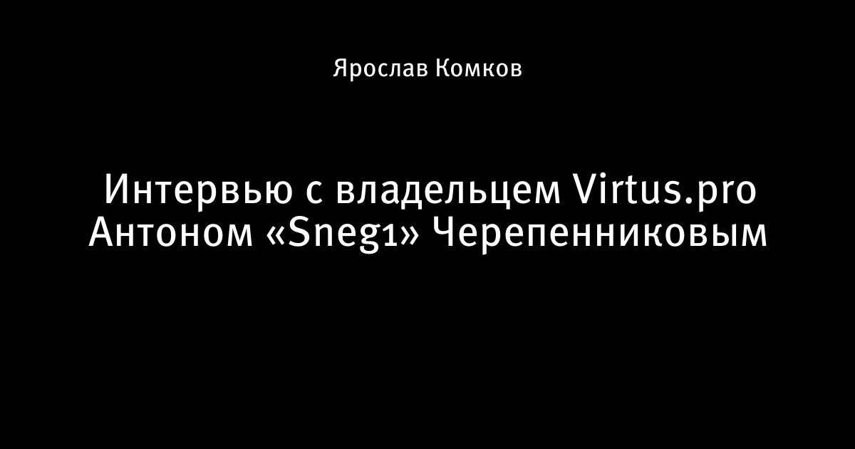 22 июня 2015, 01:00 Интервью с владельцем Virtus.pro Антоном «Sneg1» Черепенниковым 1 Автор Ярослав Комков Этот пост опубликован в блоге на Трибуне Sports.ru. Присоединяйтесь к крупнейшему сообществу спортивных болельщиков! Другие посты блога Твитч Dota 2