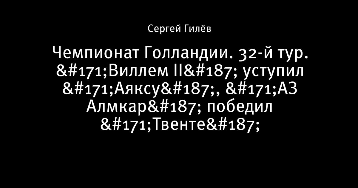 Чемпионат Голландии. 32-й тур. «Виллем II» уступил «Аяксу», «АЗ Алмкар» победил «Твенте»
