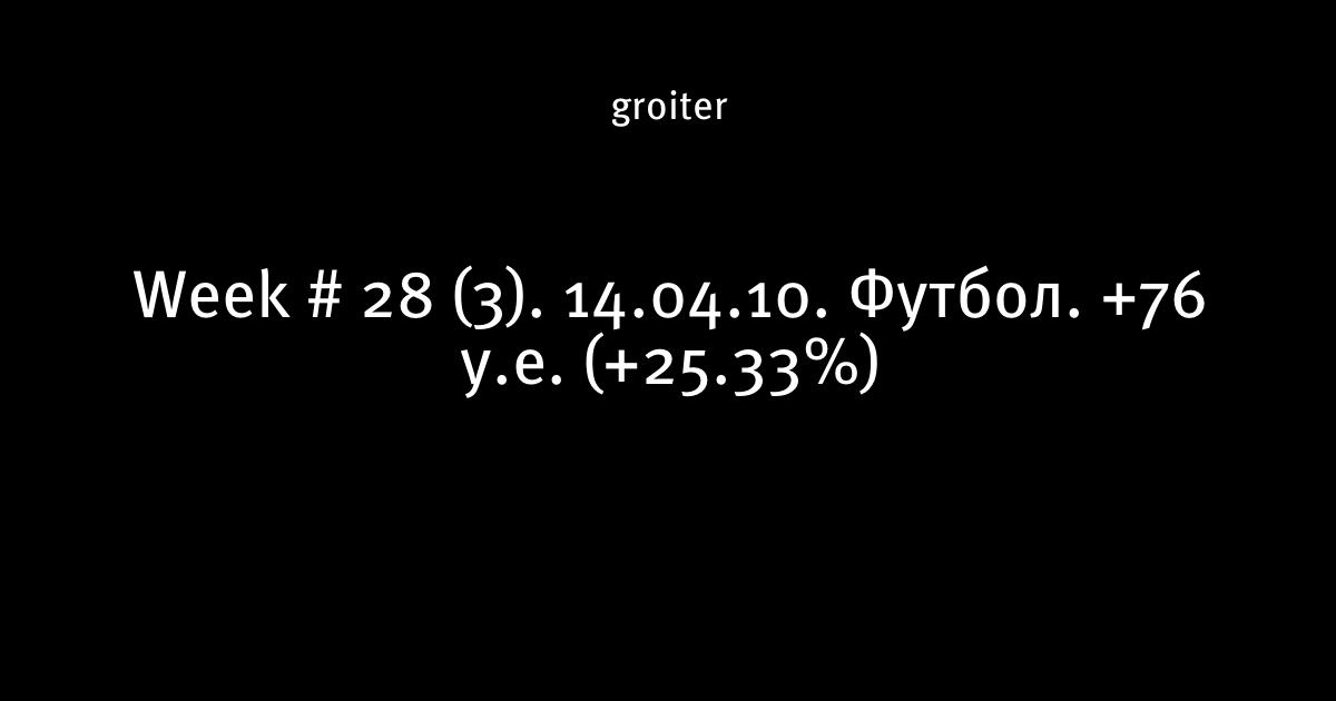Week # 28 (3). 14.04.10. Футбол. +76 у.е. (+25.33%)