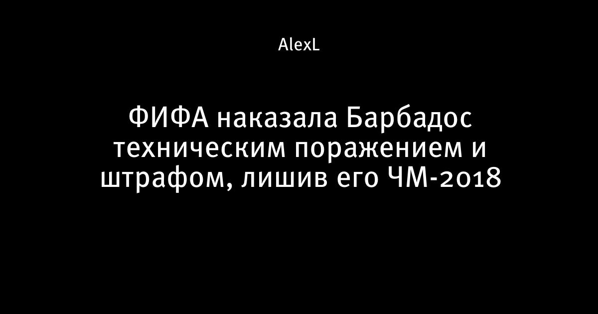 Дисциплинарный комитет ФИФА наказал техническим поражением команду Барбадоса в ответном матче 2-го раунда квалификации к ЧМ-2018. Дальше прошла сборная Арубы. Причина наказания стара и банальна как мир - участие в матче дисквалифицированного игрока.
