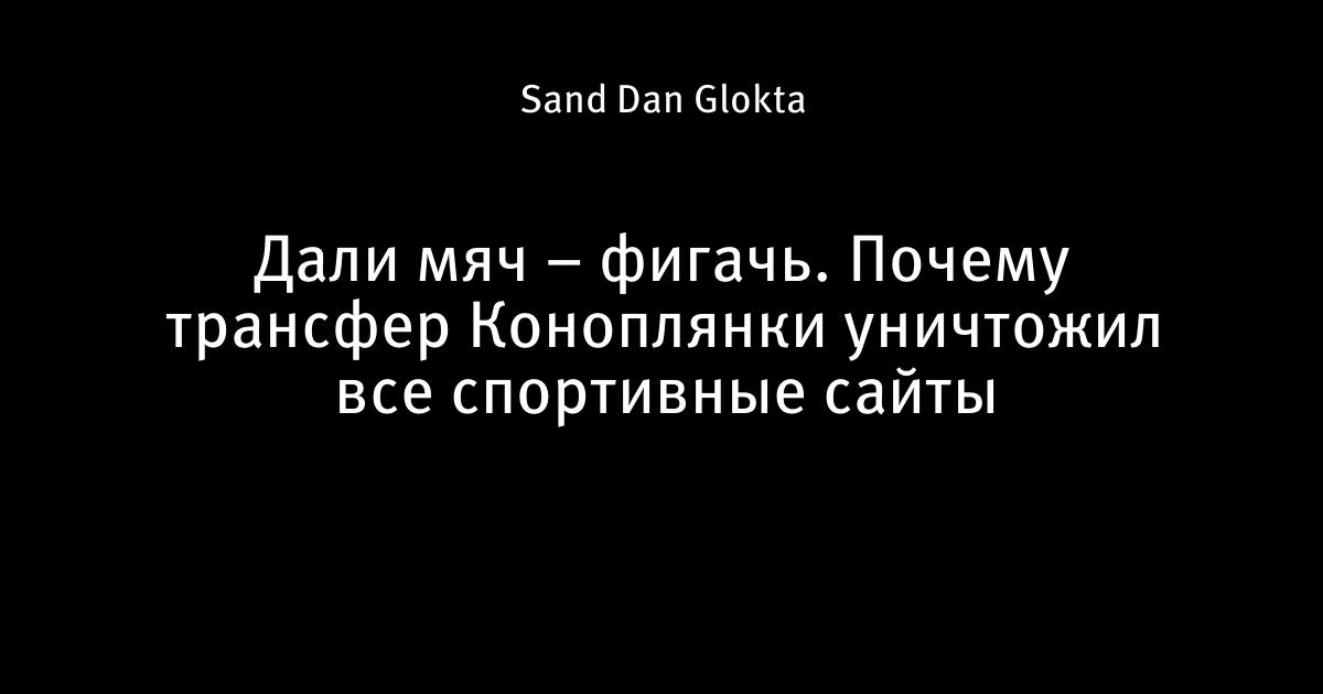 3 июля 2015, 17:55 Дали мяч – фигачь. Почему трансфер Коноплянки уничтожил все спортивные сайты 1 Автор Sand Dan Glokta Этот пост опубликован в блоге на Трибуне Sports.ru. Присоединяйтесь к крупнейшему сообществу спортивных болельщиков! Другие посты блога Разборки в олимпийском Париже Севилья Евгений Коноплянка трансферы