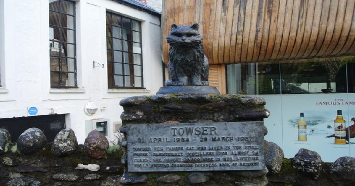 На территории винокуренного завода Глентаррет, где производится виски Famous Grouse, установлена статуя в честь выдающегося бывшего служащего. Это не управляющий и не рабочий, и даже вообще не человек. В бронзе увековечена длинношерстная полосатая кошка Таузер, а постамент украшает гордая надпись: «Таузер, знаменитая кошка, обитавшая на винокурне Глентаррет почти 24 года.
