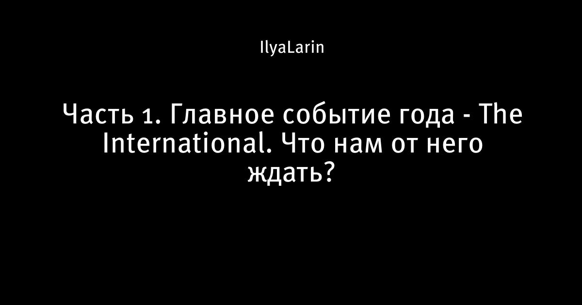 Часть 1. Главное событие года - The International. Что нам от него ждать?