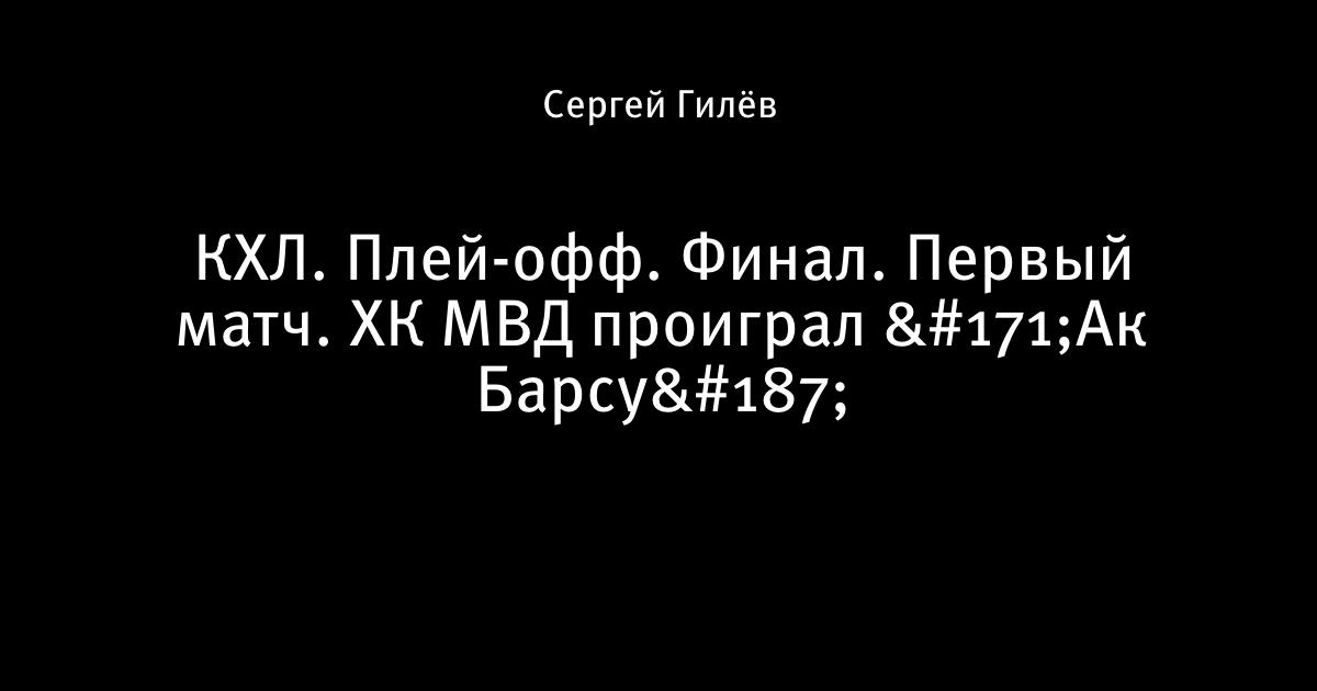 15 апреля 2010, 22:50 КХЛ. Плей-офф. Финал. Первый матч. ХК МВД проиграл «Ак Барсу» ХК МВД Ак Барс 2:3 Автор Сергей Гилёв Этот пост опубликован в блоге на Трибуне Sports.ru. Присоединяйтесь к крупнейшему сообществу спортивных болельщиков! Другие посты блога Айс-ТВ