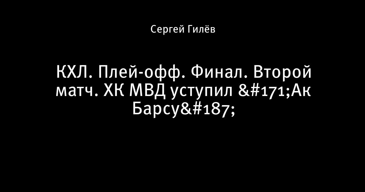 17 апреля 2010, 00:59 КХЛ. Плей-офф. Финал. Второй матч. ХК МВД уступил «Ак Барсу» ХК МВД Ак Барс 1:4 Автор Сергей Гилёв Этот пост опубликован в блоге на Трибуне Sports.ru. Присоединяйтесь к крупнейшему сообществу спортивных болельщиков! Другие посты блога Айс-ТВ