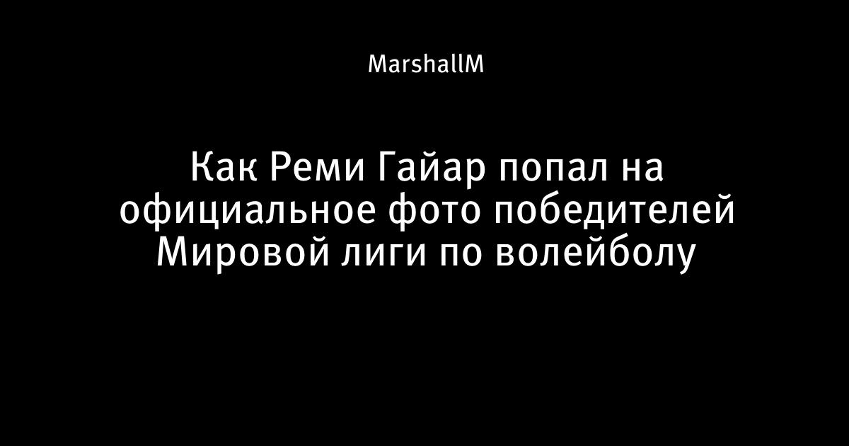 20 июля 2015, 10:05 Как Реми Гайар попал на официальное фото победителей Мировой лиги по волейболу 1 Автор MarshallM Этот пост опубликован в блоге на Трибуне Sports.ru. Присоединяйтесь к крупнейшему сообществу спортивных болельщиков! Другие посты блога Вы это видели? Мировая лига сборная Франции Реми Гайар сборная Сербии