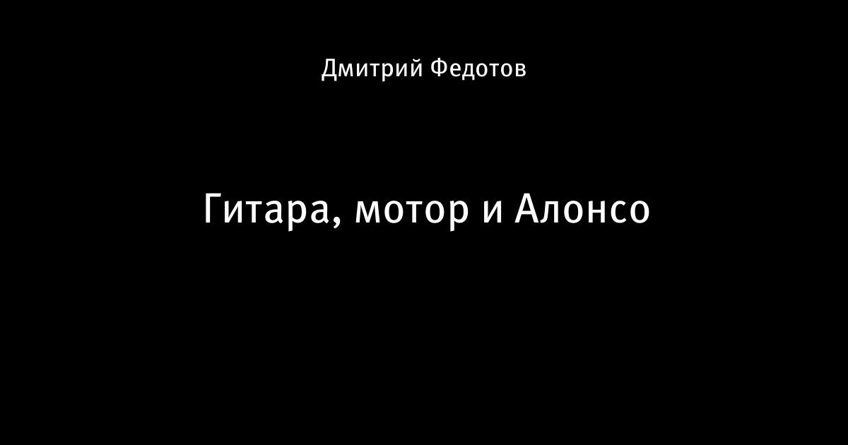 18 апреля 2010, 09:23 Гитара, мотор и Алонсо У меня нет слов. Просто смотрите и слушайте :) Автор Дмитрий Федотов