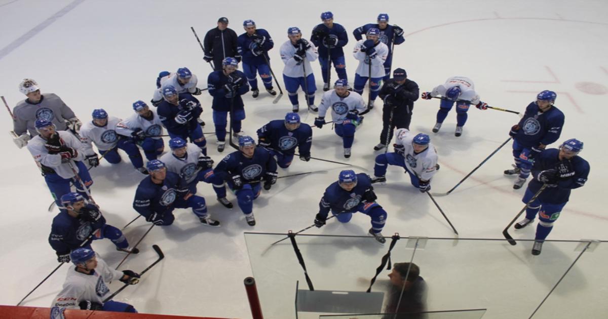 «Зубры» вышли на лед точно по графику. Из-за сильной разницы температур возле льда, и снаружи арены первые минуты занятия прошли в густом тумане.