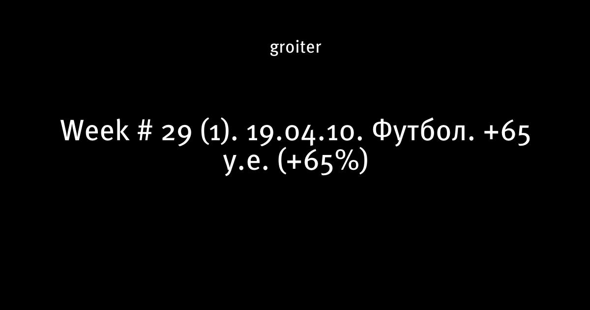 Week # 29 (1). 19.04.10. Футбол. +65 у.е. (+65%)
