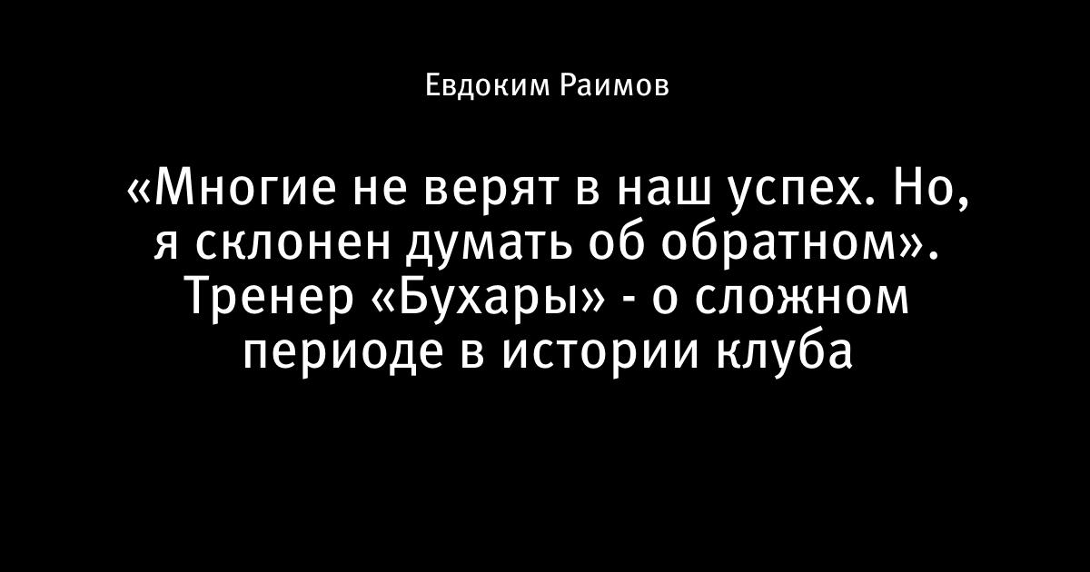 «Многие не верят в наш успех. Но, я склонен думать об обратном». Тренер «Бухары» - о сложном периоде в истории клуба