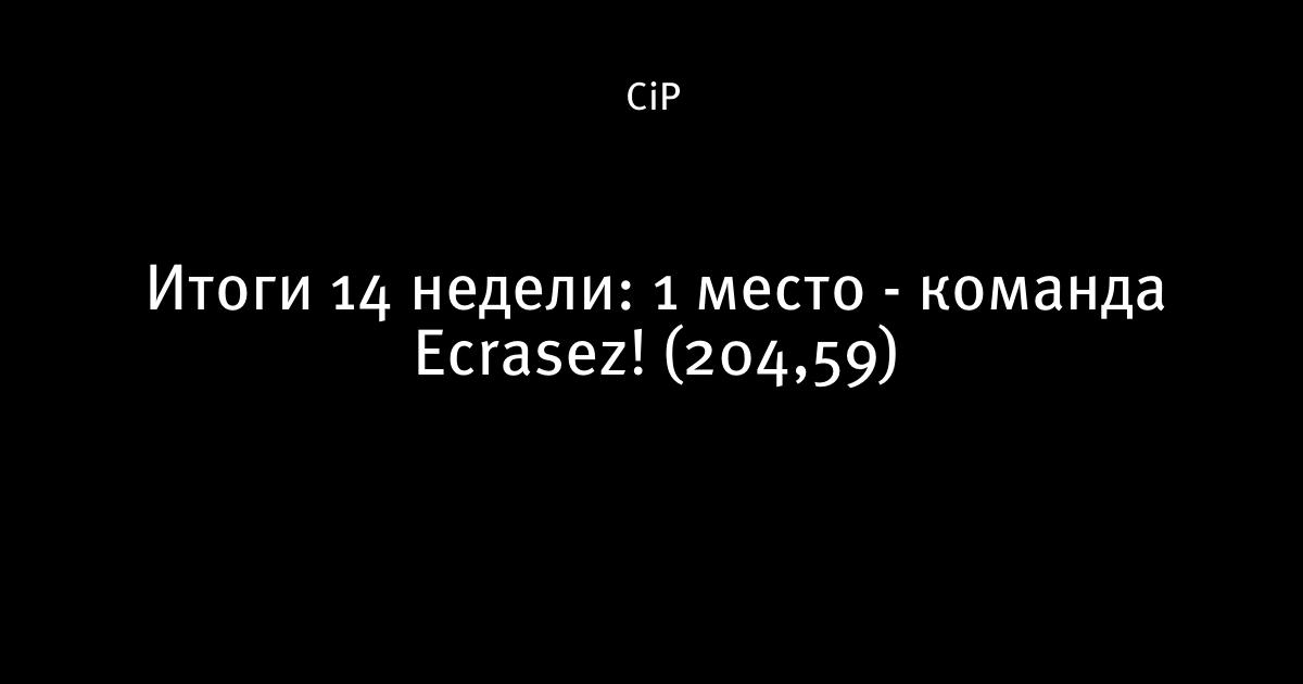 Итоги 14 недели: 1 место - команда Ecrasez! (204,59)