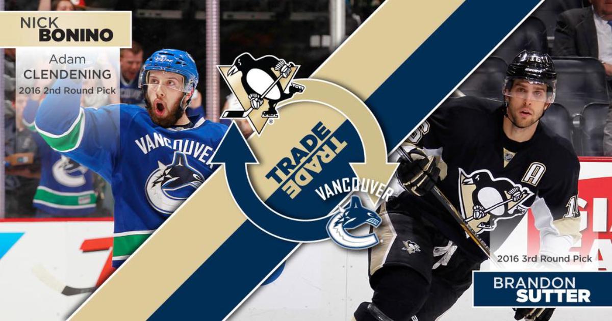 Пингвины обменяли Брендона Саттера в Ванкувер и получили Ника Бонино и молодого защитника Адама Кленденинга.