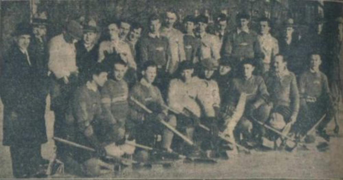 Общее фото сборных Литвы и Латвии перед товарищеской игрой 27 февраля 1932 года.