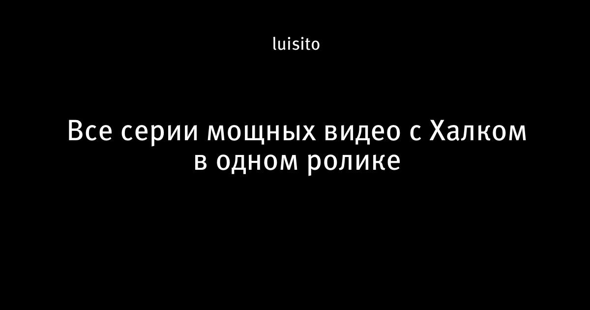 31 июля 2015, 17:59 Все серии мощных видео с Халком в одном ролике 1 Автор luisito Этот пост опубликован в блоге на Трибуне Sports.ru. Присоединяйтесь к крупнейшему сообществу спортивных болельщиков! Другие посты блога Вы это видели? Зенит Халк