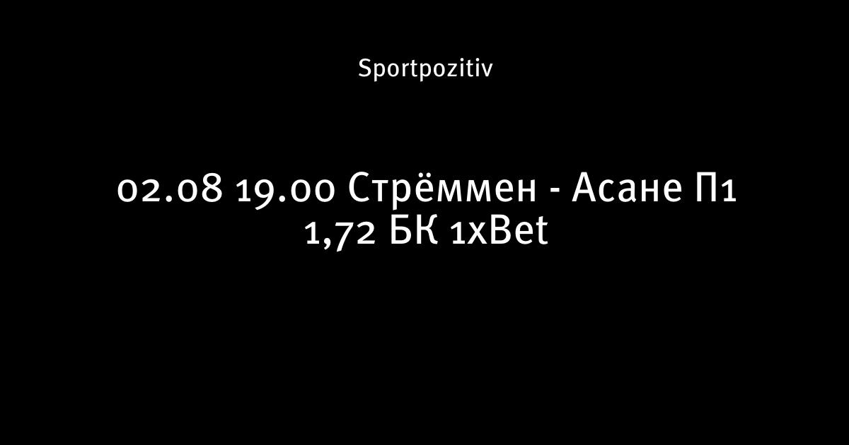 02.08 19.00 Стрёммен - Асане П1 1,72 БК 1xBet