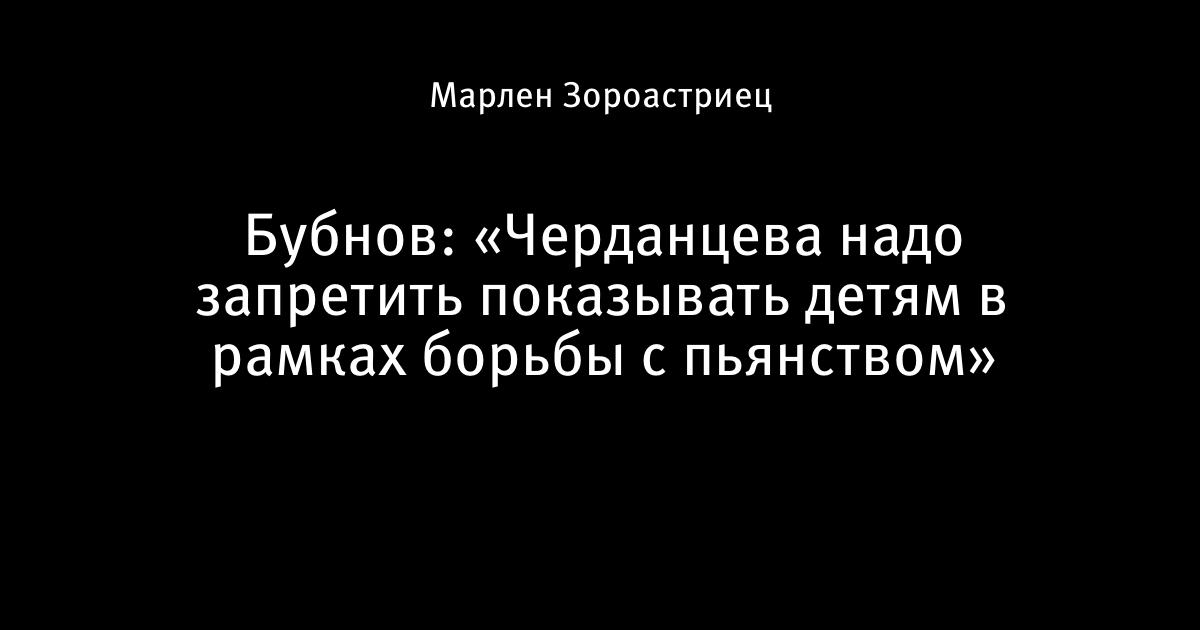Бубнов: «Черданцева надо запретить показывать детям в рамках борьбы с пьянством»