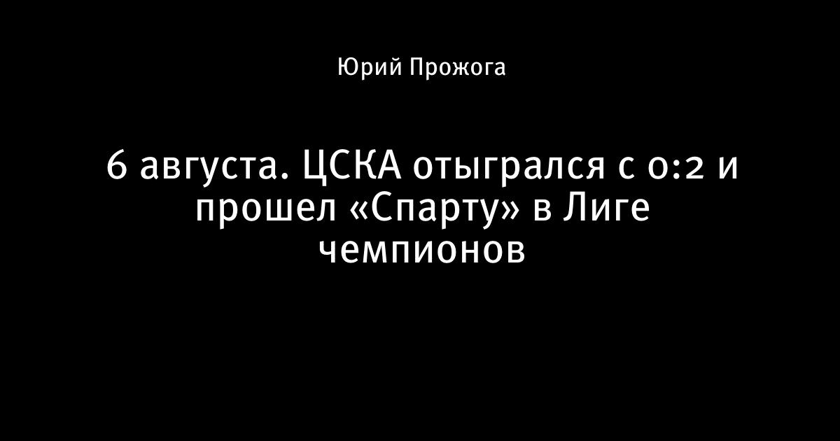 5 августа 2015, 22:33 6 августа. ЦСКА отыгрался с 0:2 и прошел «Спарту» в Лиге чемпионов Автор Юрий Прожога Этот пост опубликован в блоге на Трибуне Sports.ru. Присоединяйтесь к крупнейшему сообществу спортивных болельщиков! Другие посты блога Рисую спорт Спарта Прага ЦСКА Лига чемпионов УЕФА