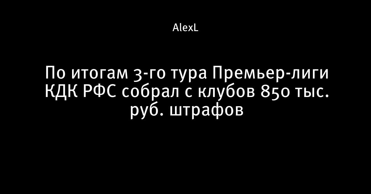 По итогам 3-го тура Премьер-лиги КДК РФС собрал с клубов 850 тыс. руб. штрафов