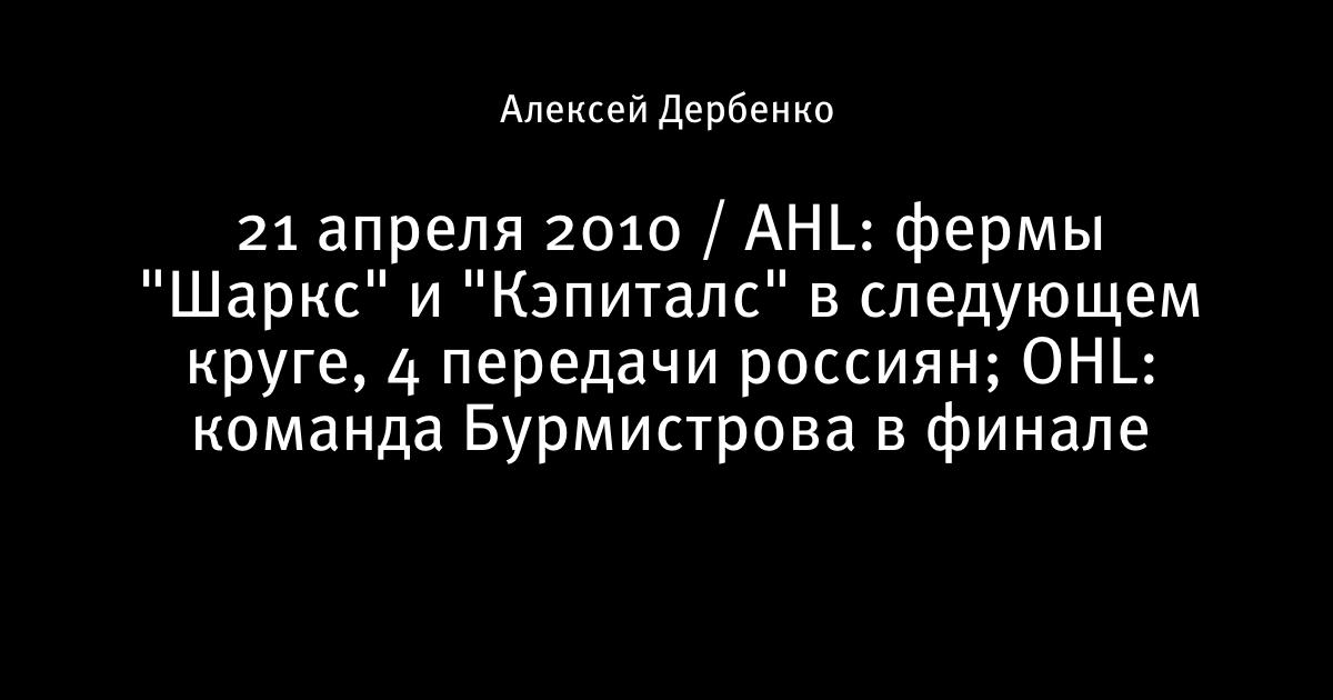 21 апреля 2010 / AHL: фермы "Шаркс" и "Кэпиталс" в следующем круге, 4 передачи россиян; OHL: команда Бурмистрова в финале