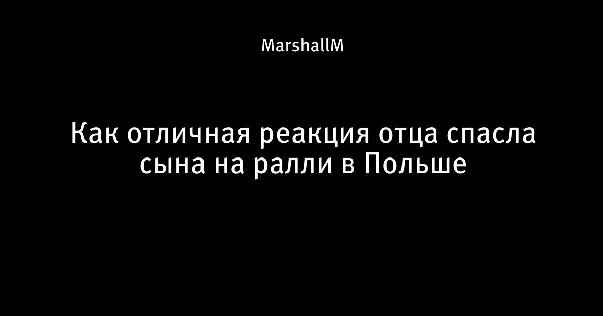 13 августа 2015, 17:50 Как отличная реакция отца спасла сына на ралли в Польше 1 Автор MarshallM Этот пост опубликован в блоге на Трибуне Sports.ru. Присоединяйтесь к крупнейшему сообществу спортивных болельщиков! Другие посты блога Вы это видели? Ралли Польши