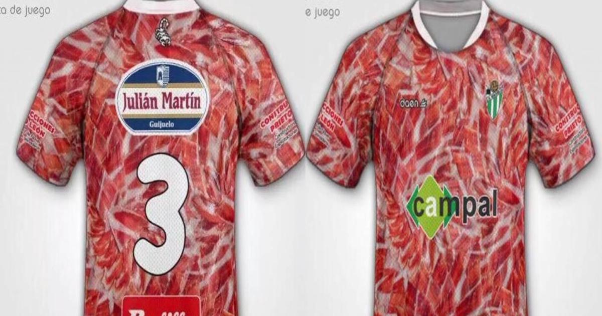 Клуб испанской третьей лиги из Гихуэло, возможно, совсем уж Гихуэл, ибо выпустил такую прекрасную форму, скорее всего, для того, чтобы прорекламировать свой великий и ужасный хамон. На футболке также надпись «pata negra», что переводится не иначе как чёрный окорок.