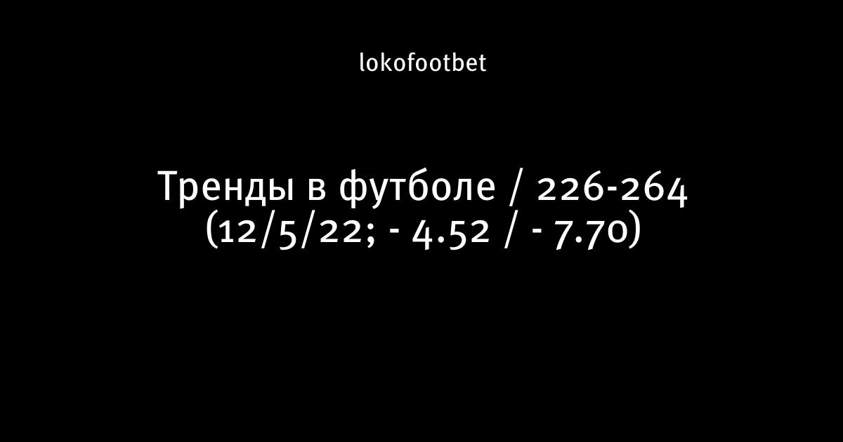 Тренды в футболе / 226-264 (12/5/22; - 4.52 / - 7.70)