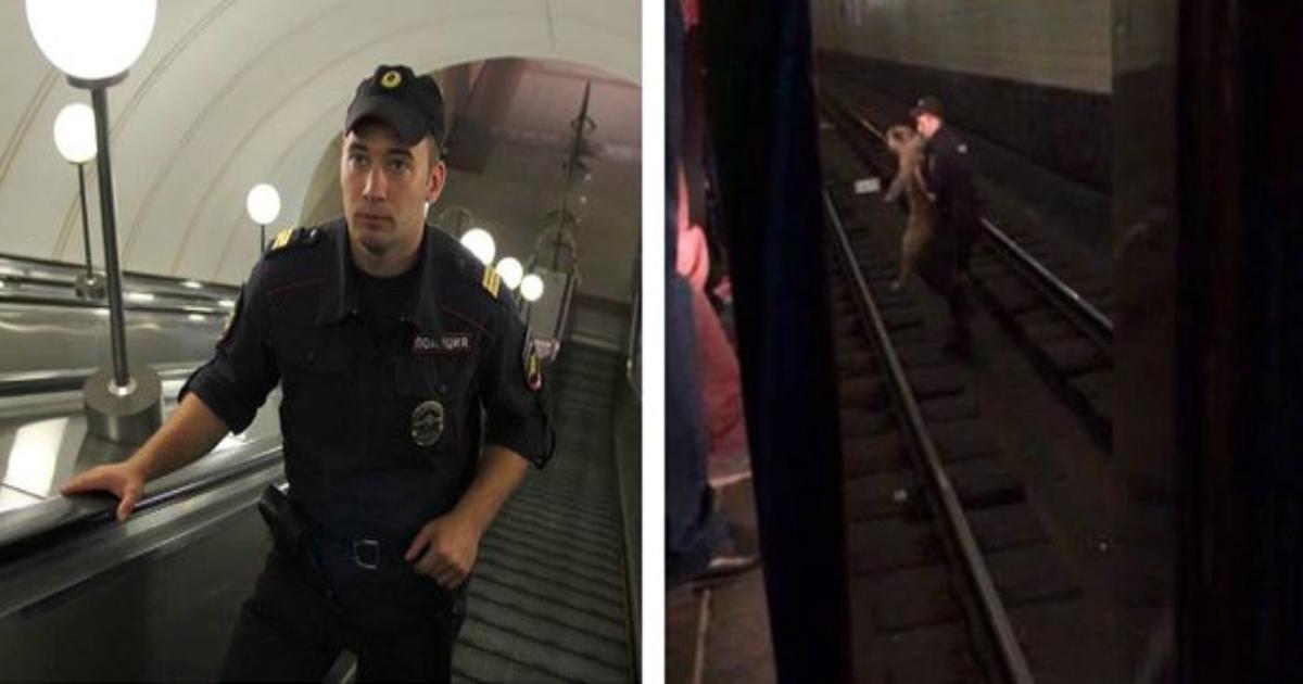 Собаку спас сотрудник полиции, который подбежал, спрыгнул на рельсы, обнял под лапы (большого неизвестного барбоса, ужасно напуганного) и на руках вынес на станцию.На этом в общем история заканчивается. Да и вряд ли это назовешь историей, просто обычный нормальный человек выполнял свою работу. Но почему-то хочется чтобы об этом обычном человеке узнали как можно больше. Чтобы как можно больше людей сказали: молодец, спасибо! А кто-то просто взял с него пример — пример обычной человечности.