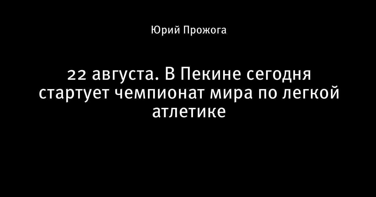 22 августа 2015, 20:37 22 августа. В Пекине сегодня стартует чемпионат мира по легкой атлетике Автор Юрий Прожога Этот пост опубликован в блоге на Трибуне Sports.ru. Присоединяйтесь к крупнейшему сообществу спортивных болельщиков! Другие посты блога Рисую спорт чемпионат мира по легкой атлетике
