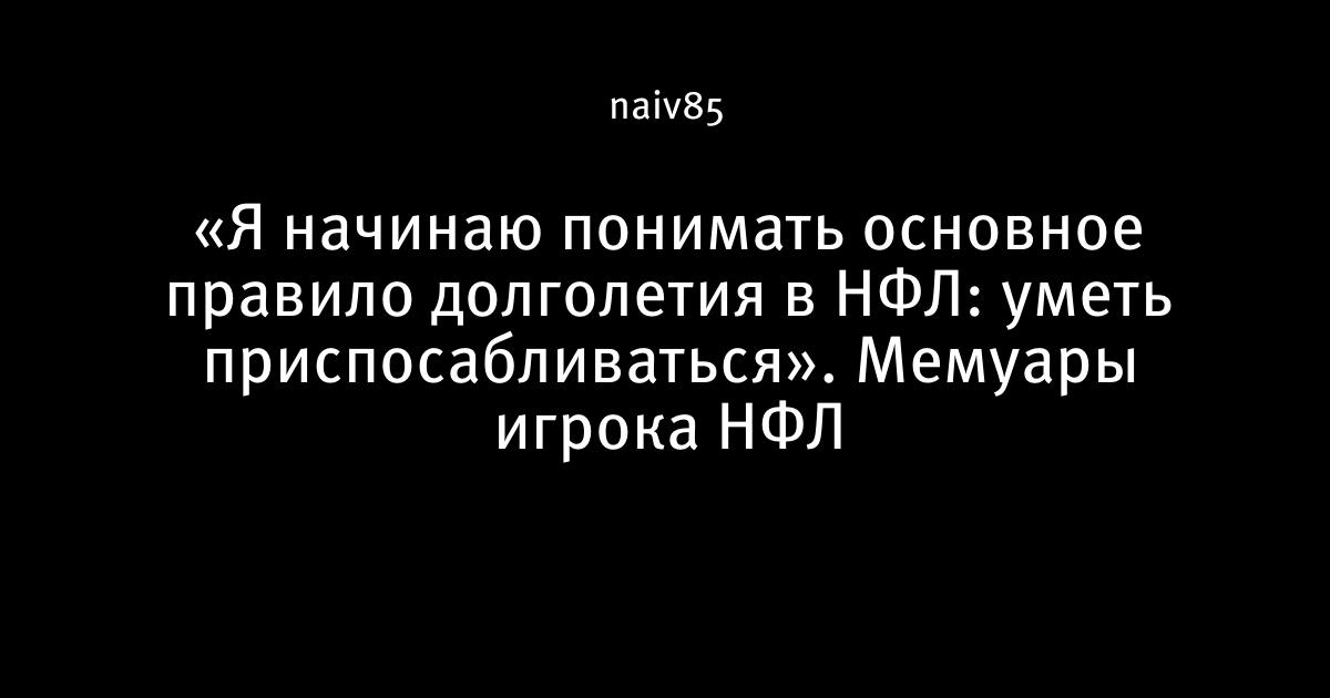 «Я начинаю понимать основное правило долголетия в НФЛ: уметь приспосабливаться». Мемуары игрока НФЛ