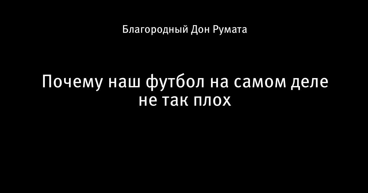 И этот футбол надо любить. Таким какой он есть. С корявыми футболистами, не умеющими играть в касание, с судьями в двух идентичных ситуациях подряд с периодом в минуту принимающими разные решения, с функционерами, которые за неделю до старта чемпионата не могут определиться с правилами игры.