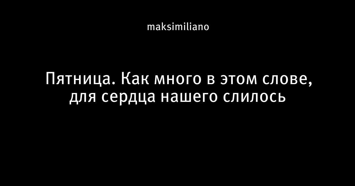 Пятница. Как много в этом слове, для сердца нашего слилось