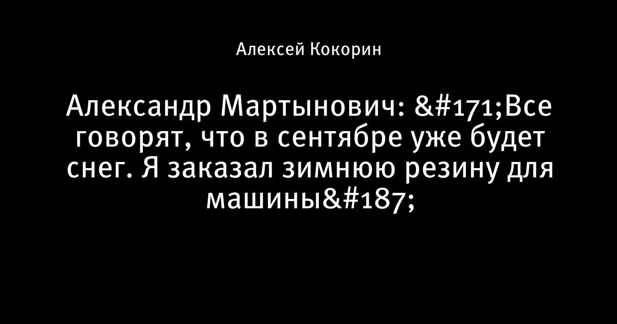 Александр Мартынович: «Все говорят, что в сентябре уже будет снег. Я заказал зимнюю резину для машины»