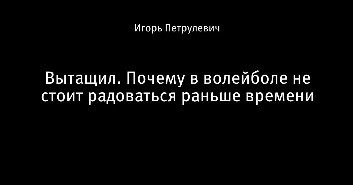 2 сентября 2015, 09:53 Вытащил. Почему в волейболе не стоит радоваться раньше времени Автор Игорь Петрулевич Этот пост опубликован в блоге на Трибуне Sports.ru. Присоединяйтесь к крупнейшему сообществу спортивных болельщиков! Другие посты блога Гифка