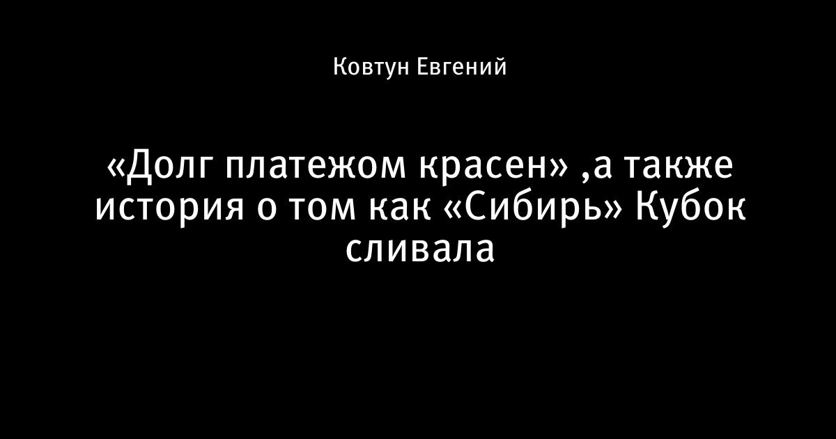 «Долг платежом красен» ,а также история о том как «Сибирь» Кубок сливала