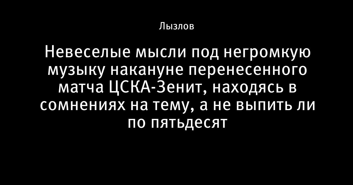 Невеселые мысли под негромкую музыку накануне перенесенного матча ЦСКА-Зенит, находясь в сомнениях на тему, а не выпить ли по пятьдесят
