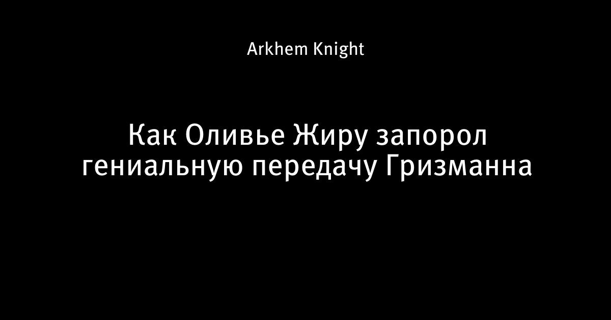 8 сентября 2015, 12:57 Как Оливье Жиру запорол гениальную передачу Гризманна 1 Автор Arkhem Knight Этот пост опубликован в блоге на Трибуне Sports.ru. Присоединяйтесь к крупнейшему сообществу спортивных болельщиков! Другие посты блога Лечебница Аркхем Антуан Гризманн Оливье Жиру