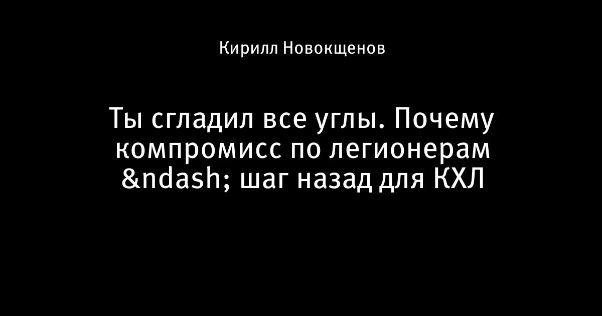 Ты сгладил все углы. Почему компромисс по легионерам – шаг назад для КХЛ