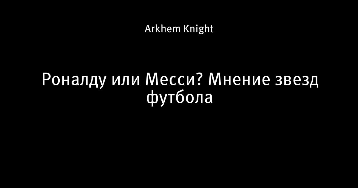 15 сентября 2015, 09:10 Роналду или Месси? Мнение звезд футбола 1 Автор Arkhem Knight Этот пост опубликован в блоге на Трибуне Sports.ru. Присоединяйтесь к крупнейшему сообществу спортивных болельщиков! Другие посты блога Лечебница Аркхем