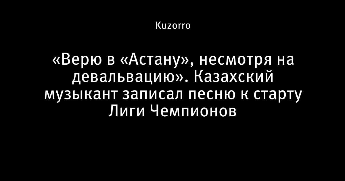 15 сентября 2015, 14:40 «Верю в «Астану», несмотря на девальвацию». Казахский музыкант записал песню к старту Лиги Чемпионов 1 Автор Kuzorro Этот пост опубликован в блоге на Трибуне Sports.ru. Присоединяйтесь к крупнейшему сообществу спортивных болельщиков! Другие посты блога Спорт-н-ролл Астана