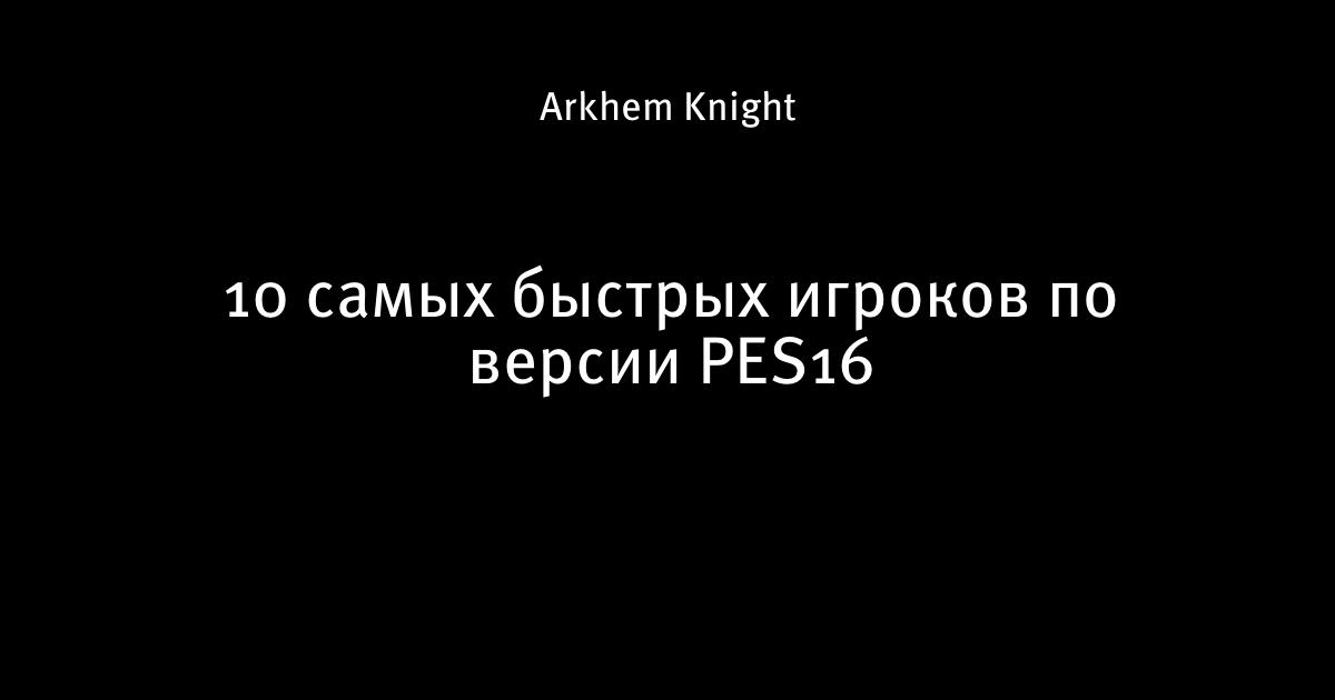 16 сентября 2015, 16:24 10 самых быстрых игроков по версии PES16 Автор Arkhem Knight Этот пост опубликован в блоге на Трибуне Sports.ru. Присоединяйтесь к крупнейшему сообществу спортивных болельщиков! Другие посты блога Лечебница Аркхем