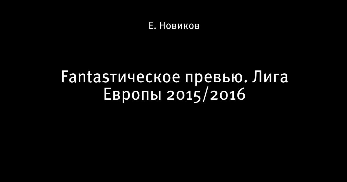 Fantasтическое превью. Лига Европы 2015/2016